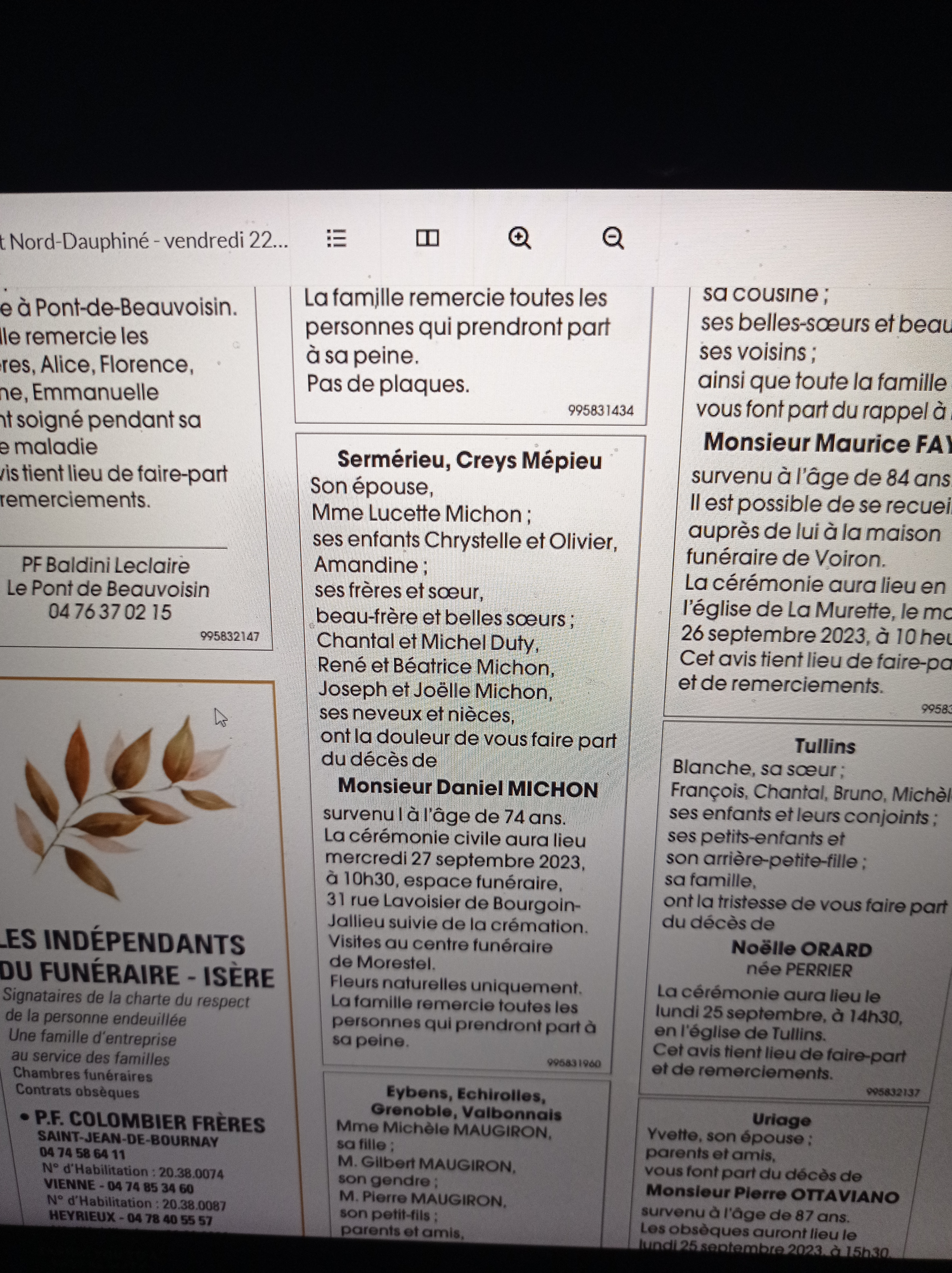 Accueil / VIVRE A CREYS / Espace presse / Avis de décès: Mr Michon Daniel